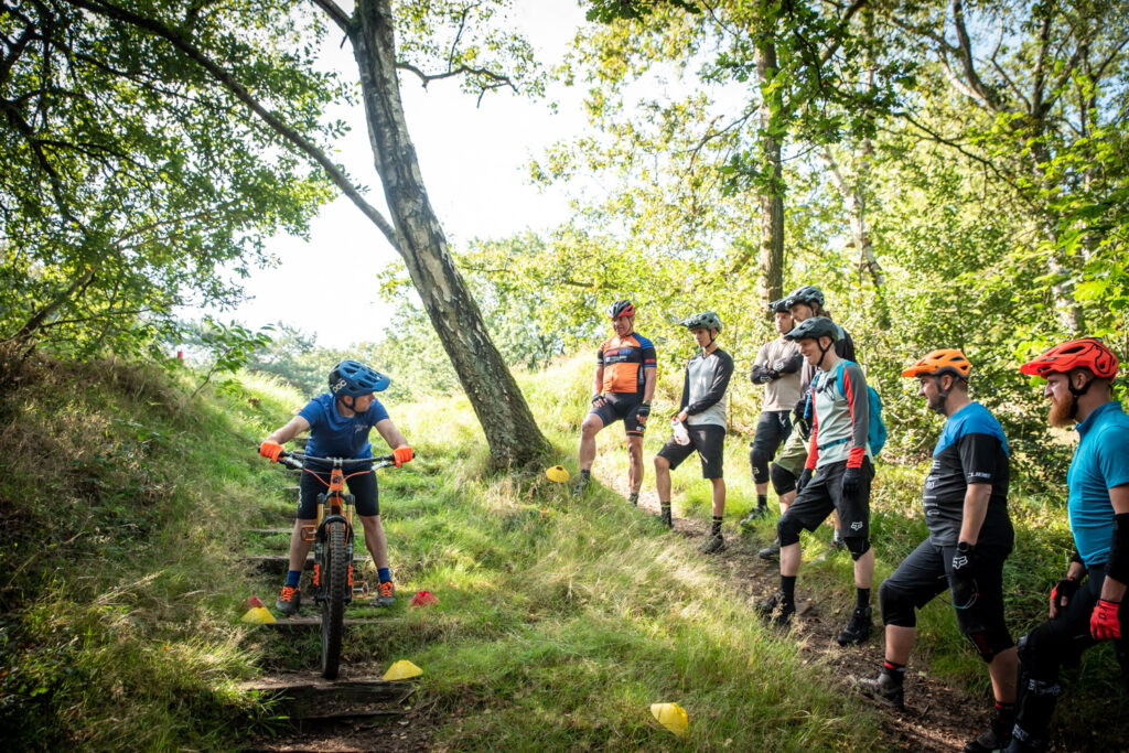 With flow techniques, you know how to maintain and create speed. You master fast turns and drop techniques (push and jump). You make line choices while riding, use the Pedal-kick and ride Off-Camber. You ride technical climbs and descents with sharp turns with confidence, as well as jumps and root passages.